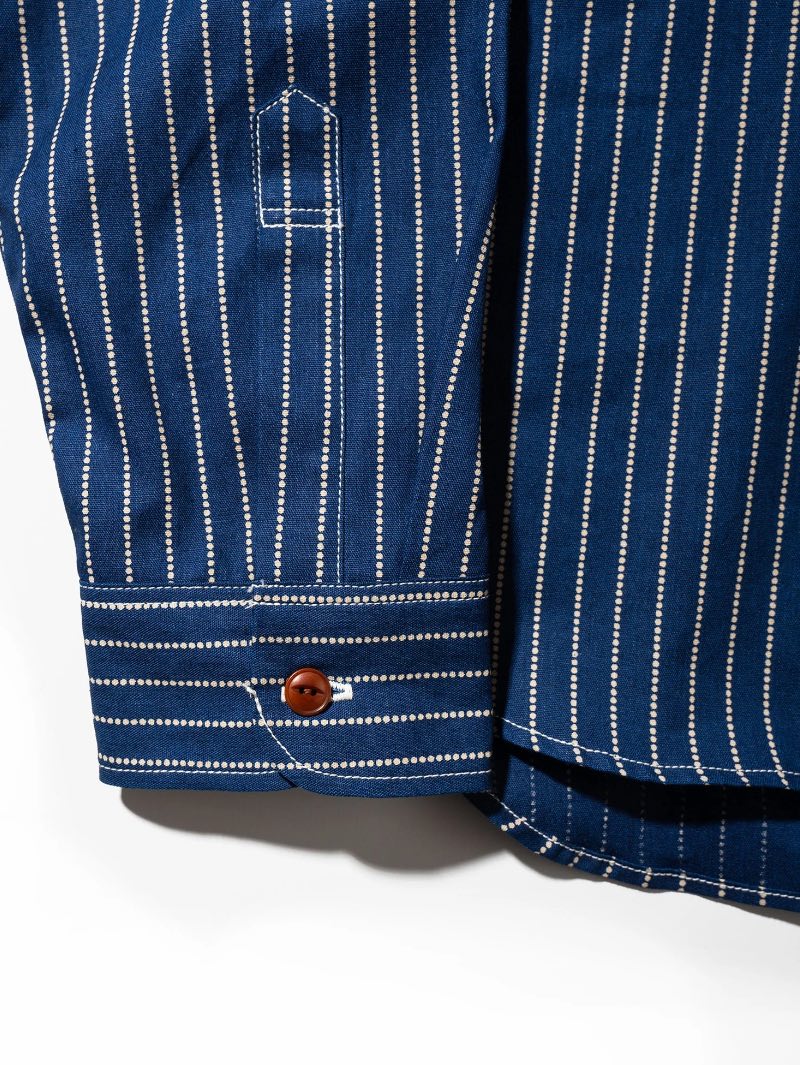 This 5oz selvedge chambray is slowly and carefully woven on vintage shuttle looms from the early 1950s, at a historic mill in Japan’s Bitchu region. Crafted with slub yarns in both the warp and weft, it features a dry, textured hand and a distinctively vintage character. Over time, the indigo dye reveals beautiful, unique fades—making each piece a canvas of personal history.