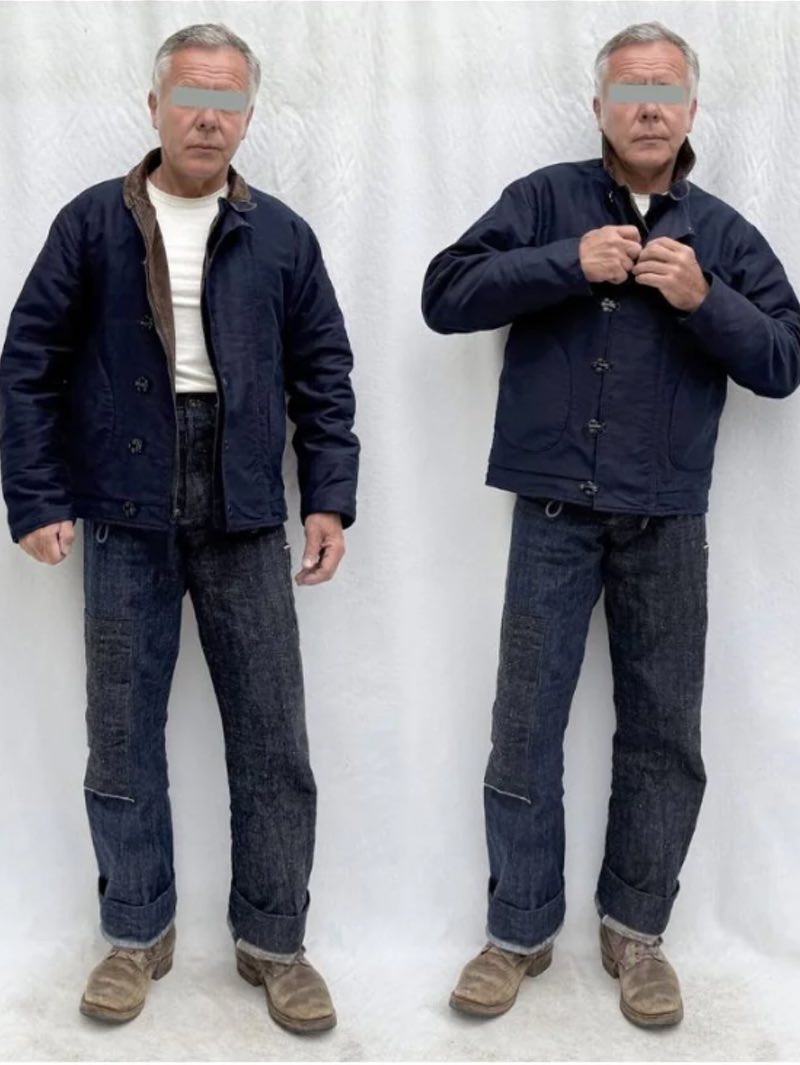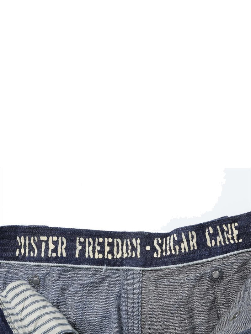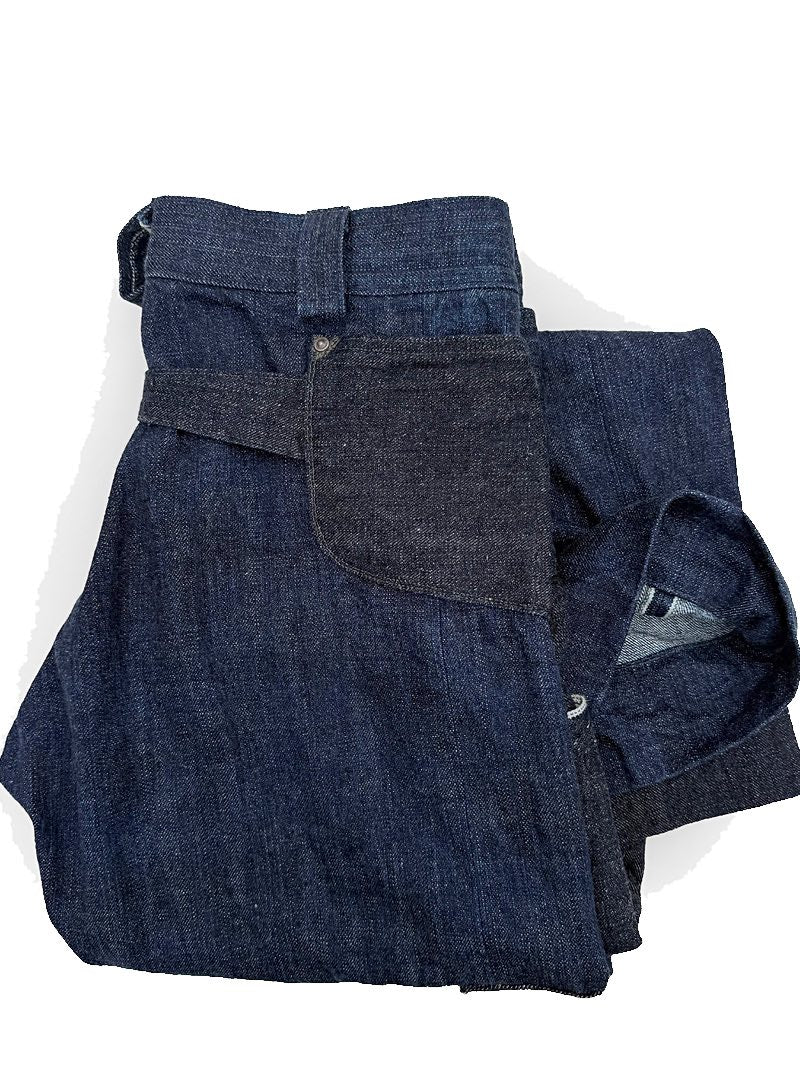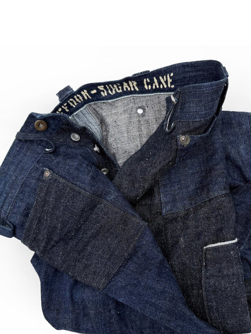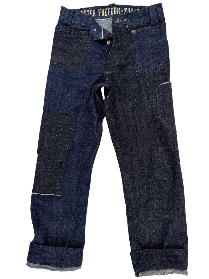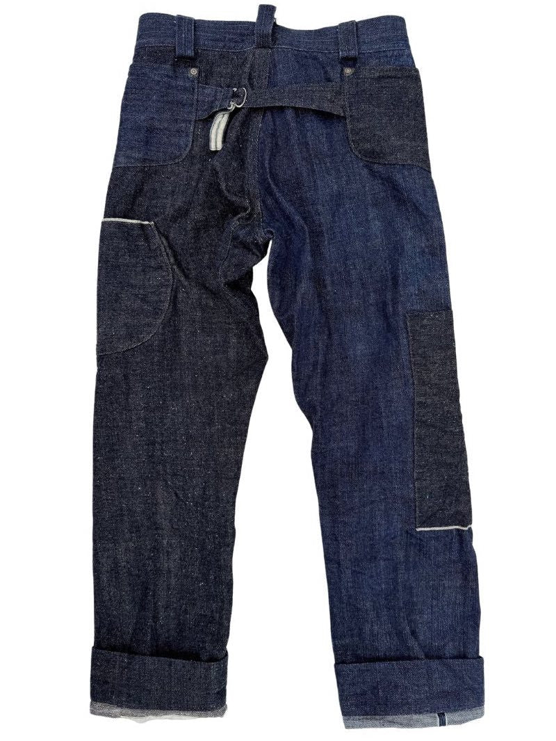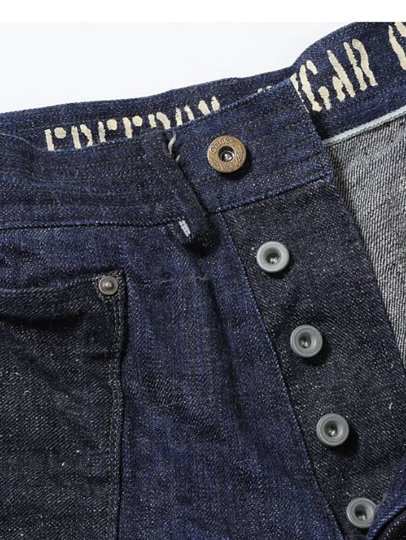- Fabric selvedge accents throughout (waistband, belt loops, fly facing, cargo pocket, knee patch…)