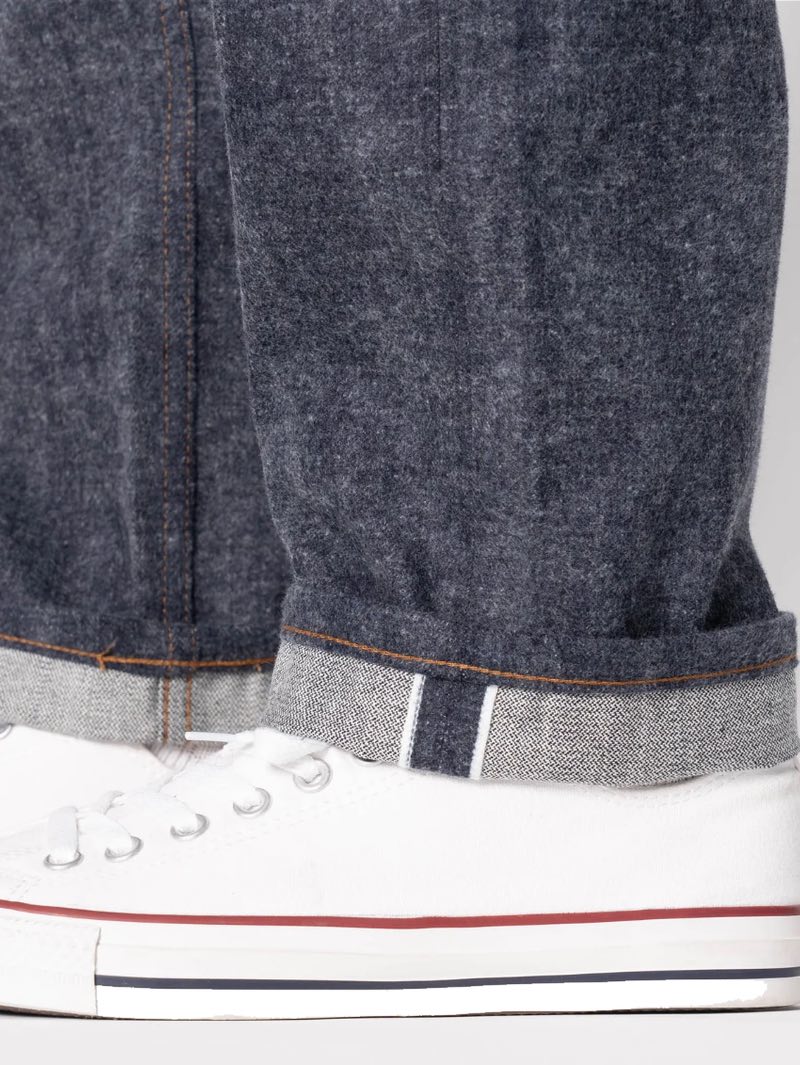 The Max Brush Selvedge is a 13.75oz Japanese selvedge denim designed for unparalleled softness and comfort. The exceptional softness comes from the fabric being brushed, creating a truly cozy feel.Inspired by our classic Left Hand Twill Selvedge, this version uses a broken twill construction to eliminate visible diagonal lines, allowing the brushed texture to take center stage. The denim is meticulously brushed in one direction and then again in the opposite, opening up the fibers for a luxuriously soft hand on both sides. Finishing details include contrast stitching, a plush suede leather patch, silver metallic hardware, and a clean white selvedge ID.