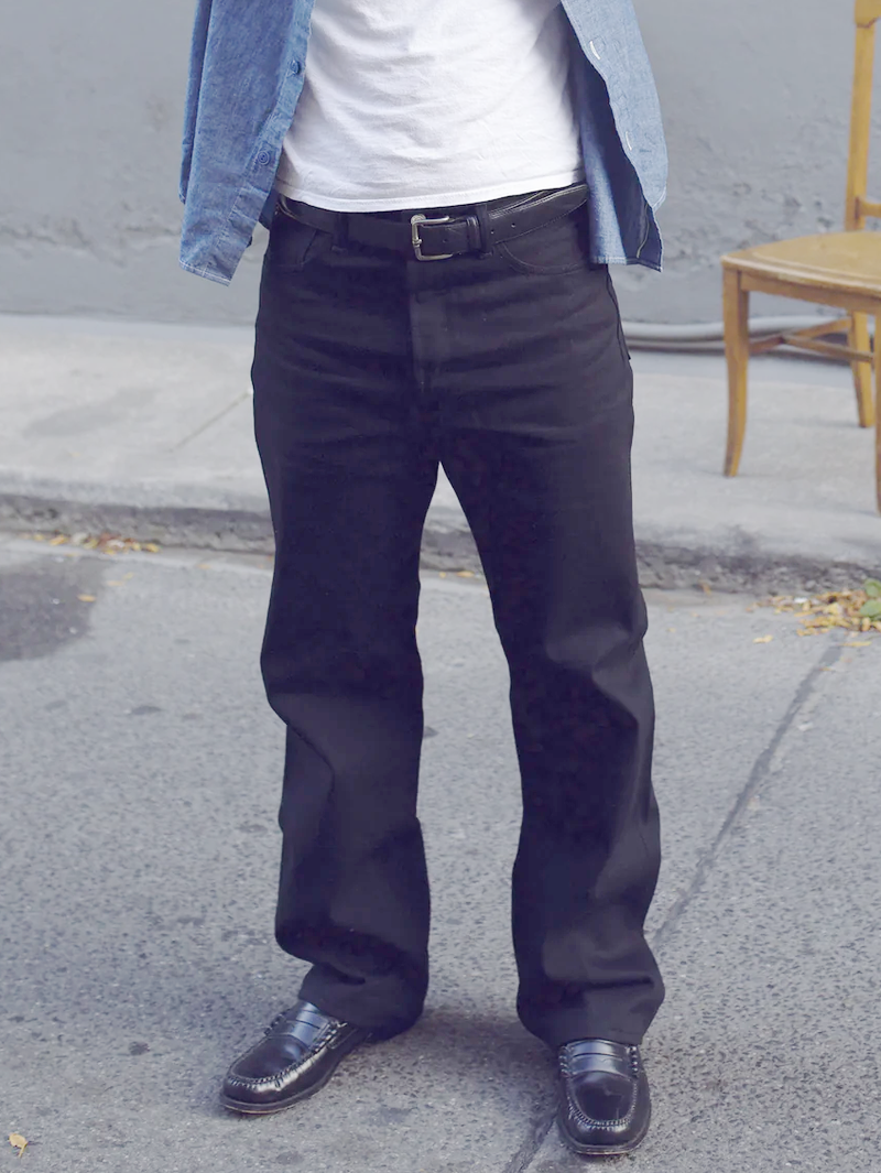 The wide straight fit strikes the perfect balance between roominess and structure: a straight, wide leg for a modern and effortless silhouette.