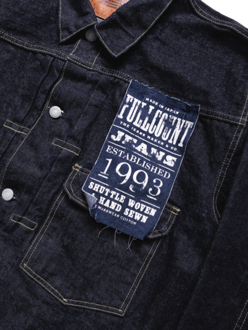 A vintage war model denim was analyzed and reproduced to achieve an authentically uneven texture, Full Count carefully analyzed the shape of the irregularities in the original denim and employed rope dyeing techniques to intentionally create variations in color.This process results in subtle differences in dyeing and creates areas of shadowing as the denim fades, mirroring the characteristics of the vintage war model. Additionally, Full Count painstakingly counted the threads on the vintage sample to ensure that their reproduction matches the original thread count.