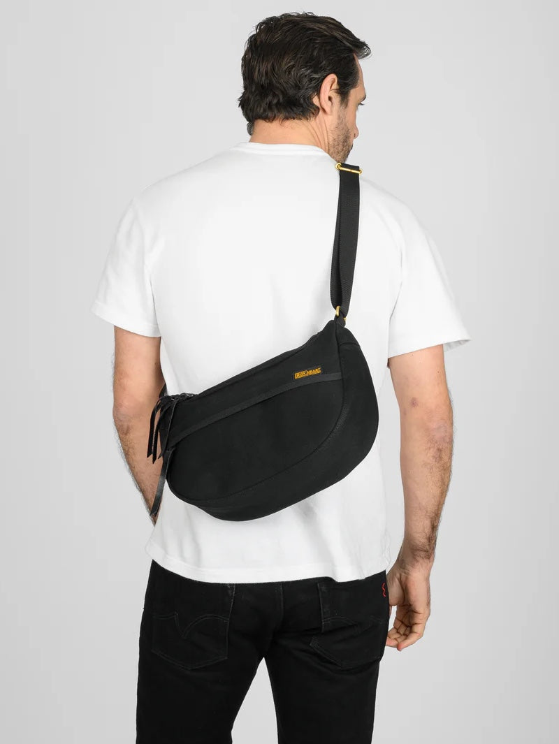 Constructed from 17oz cotton duck, this is a hardwearing, versatile shoulder bag which offers generous storage capacity considering its smaller size. Multiple storage pockets include a main compartment (easily large enough to fit a 1-litre water bottle, with plenty of room to spare) and a smaller internal pouch for hidden storage of a passport or wallet. Other features include a 1” nylon shoulder strap, YKK zippers, leather zip pulls and brass hardware - an ideal carry bag for your everyday essentials and valuables.