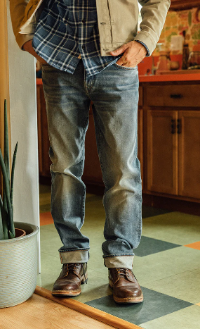 Medium-rise straight cut and a slight taper through the leg. vintage fade Indigo Japanese 14oz 4-WAY STRETCH SELVEDGE ™, zip fly, premium leather patch, and custom-branded hardware.