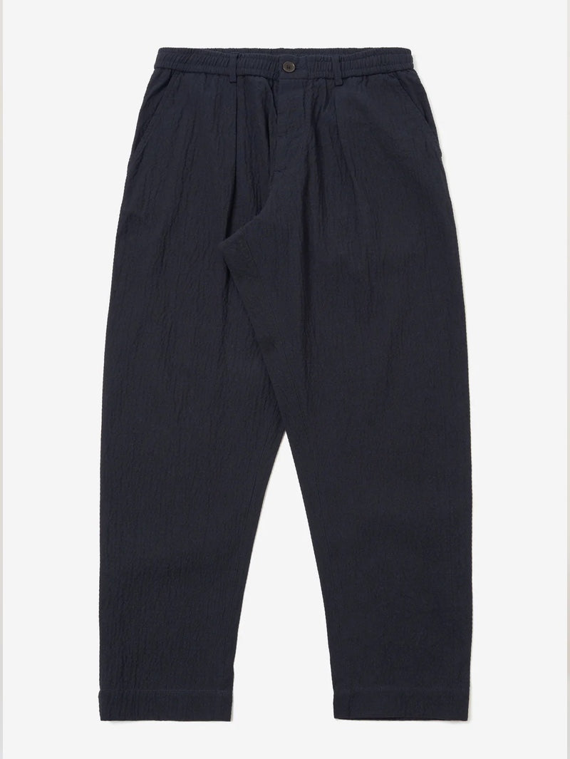 Oxford Pant is a single pleat front, wide leg trouser with a slight taper. A fuller and larger shape when compared to our Pleated Track Pant.