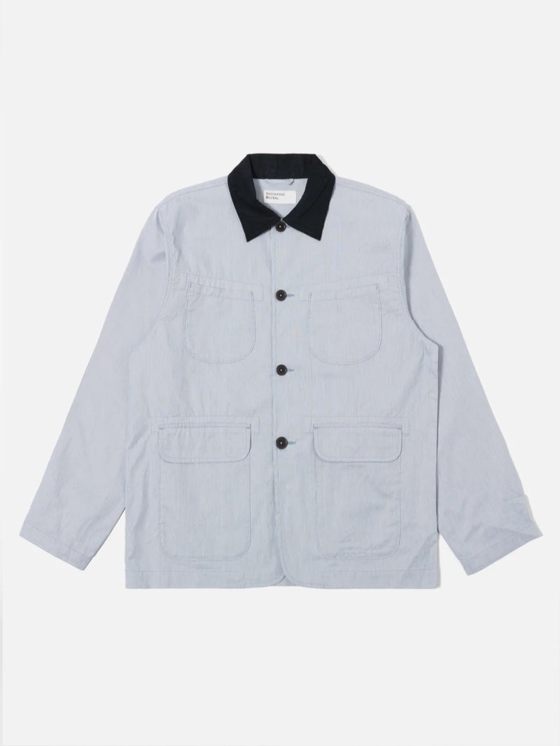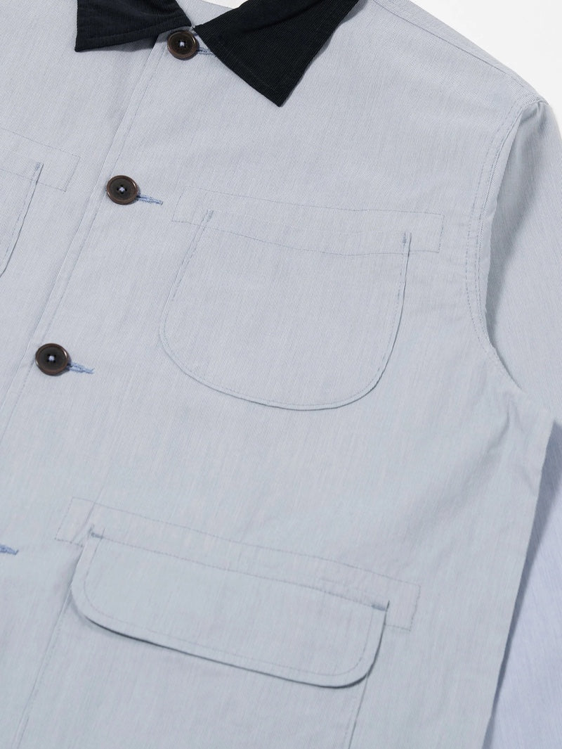 A loose fit chore jacket, Labour Jacket has four pockets with reinforcement detail, two with flaps, and a half elasticated cuff.