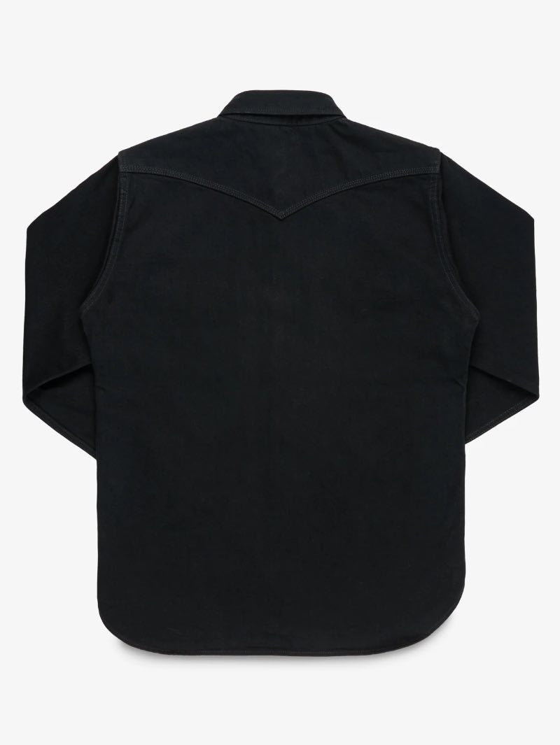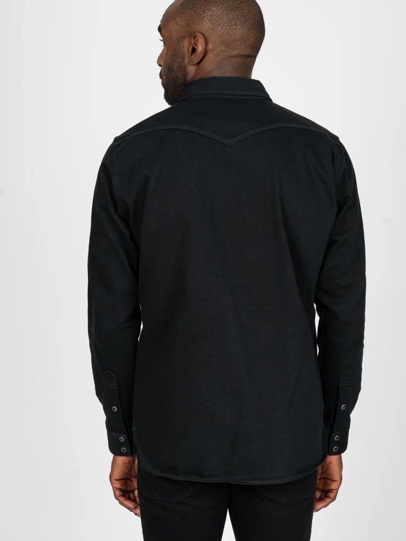Inspired by The Man in Black himself, this is our all-black denim western shirt — aka “The Johnny Cash III.” This 12 oz selvedge denim features a reactively dyed warp and weft, making it more colourfast than our sulphur-dyed denim to retain its jet-black appearance through wear and washing. To complete the stealthy look, the shirt is finished with black Permex snap fastenings and tonal stitching throughout.