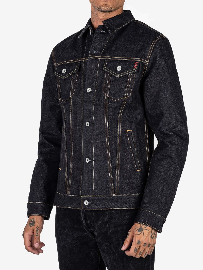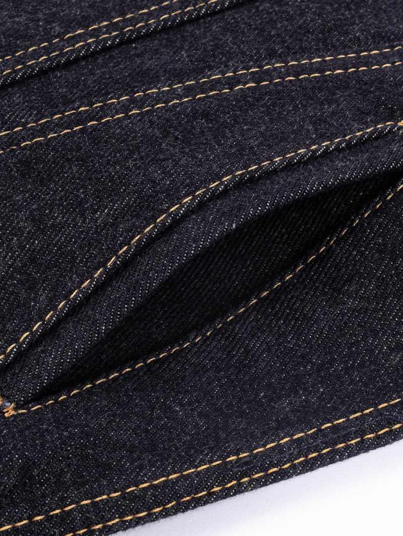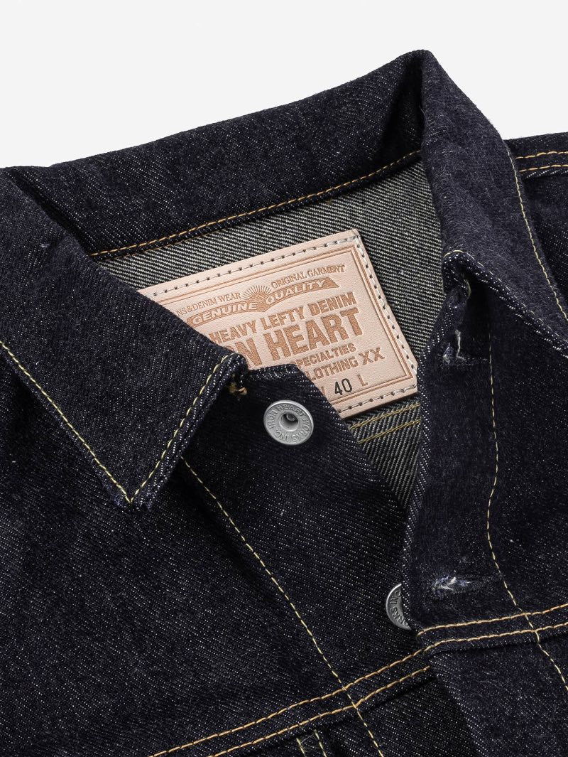 This version is made from our incredibly robust 19oz left-hand twill, woven under extreme tension to produce a dark indigo denim — resulting in one of our toughest Type III jackets to date. As the denim is unsanforized — and unlike our 19oz "lefty" jeans, we don't one-wash this model — it creates a rarity in the Iron Heart lineup: a raw selvedge denim jacket.