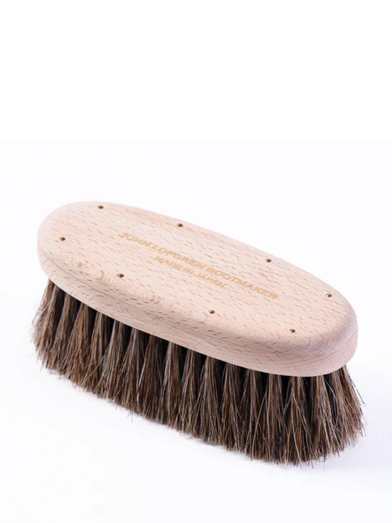 - Horse Hair Brush: Crafted by a venerable brush manufacturer established in the Taisho era (1912-1926), this shoe brush epitomizes exceptional craftsmanship and unparalleled quality. Each brush is meticulously hand-constructed with precision, showcasing a tradition of excellence in every detail. Completely handcrafted using Japanese Buna tree wood and genuine horse tail hair, this brush is perfect for dusting and polishing, giving your boots a brilliant shine. This brush is not just a tool, but a cornerstone of refined shoe care.