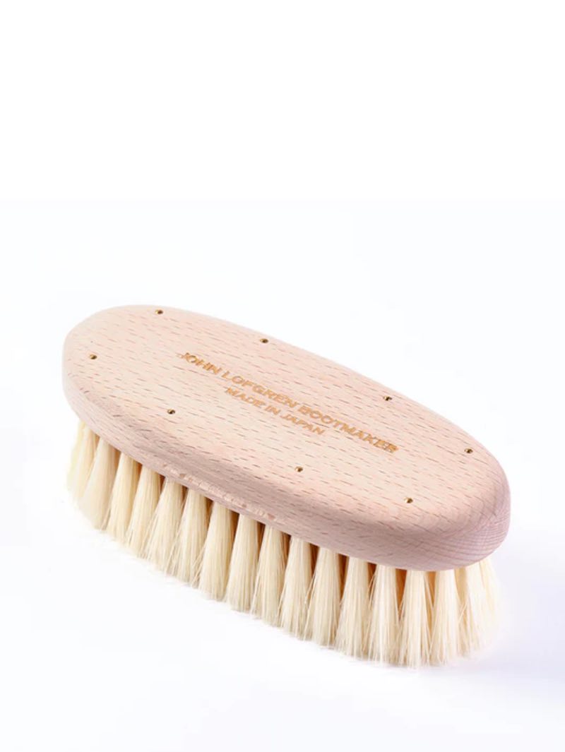 - Pig Bristle Brush: Crafted by a venerable brush manufacturer established in the Taisho era (1912-1926), this shoe brush epitomizes exceptional craftsmanship and unparalleled quality. Each brush is meticulously hand-constructed with precision, showcasing a tradition of excellence in every detail. Completely handcrafted using Japanese Buna tree wood and genuine pig bristles, this brush is perfect for dusting and polishing, giving your boots a brilliant shine. This brush is not just a tool, but a cornerstone of refined shoe care.