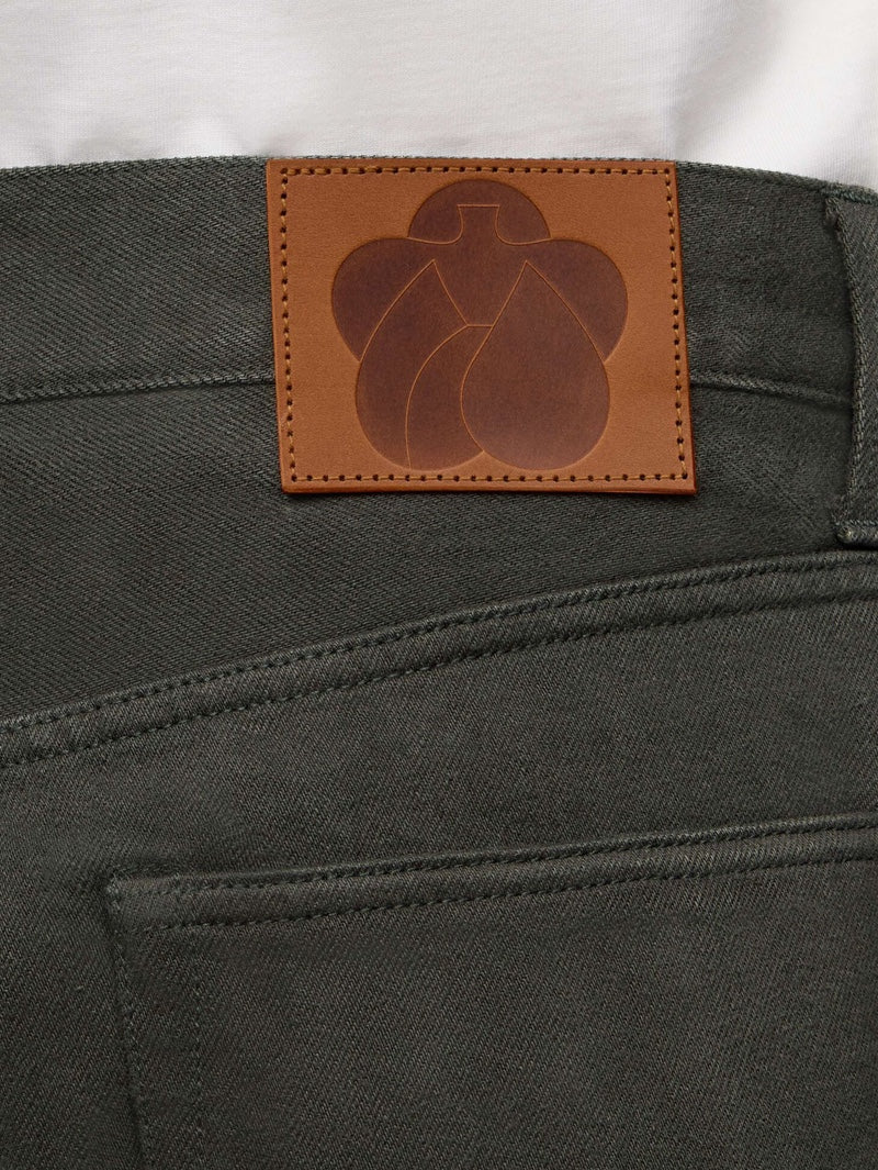 The #100 model features a straight fit with a classic, well-balanced width. It offers a refined basic silhouette with a gentle taper from the knee down. The rise is slightly deeper, providing a relaxed and comfortable fit around the waist.