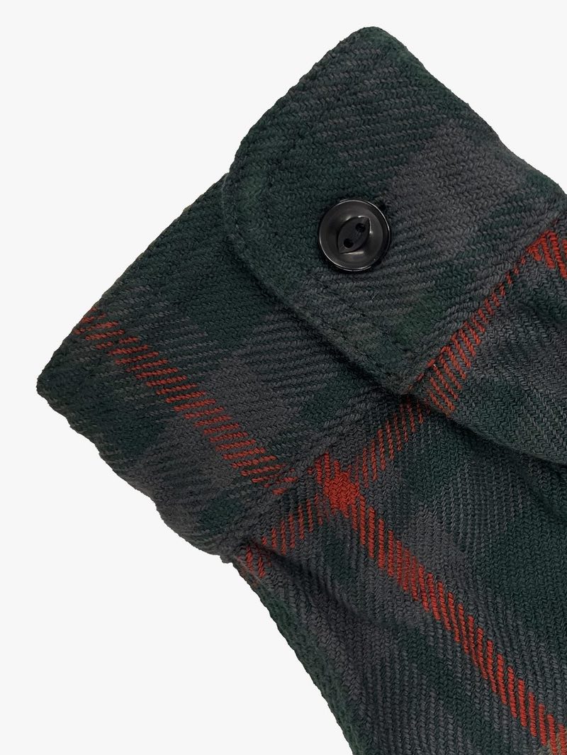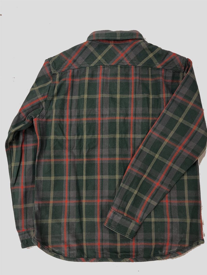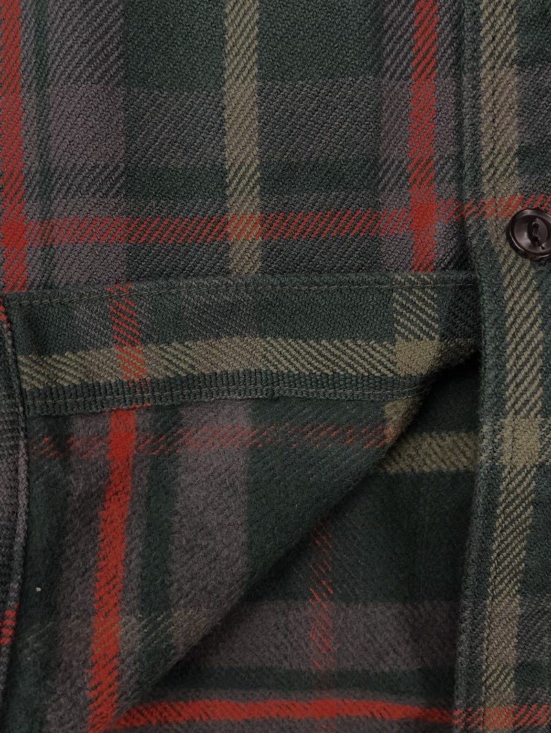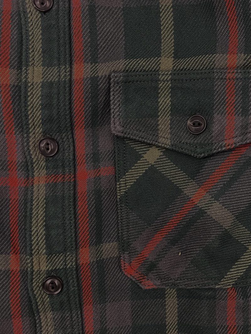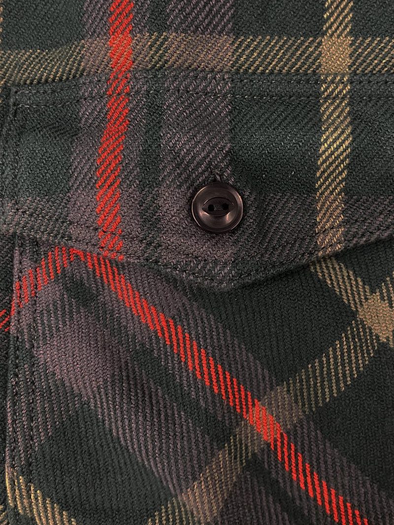 UES heavy flannel shirts are characterized by their thick fabric and the texture created by weaving on a power loom. The balance of warp and weft threads is good, and the fabric moves moderately, making it comfortable to wear. The yarn-dyed fabric using reactive dyes has high color fastness, but you can enjoy the subtle color changes as you wear it. The back is lightly brushed, making it soft to the touch and increasing its heat retention. The white lines in the checkered color scheme create a contrast of light and dark. The checkered pattern is composed of thick lines as the base color and familiar accent colors, making it a basic and easy-to-wear shirt.