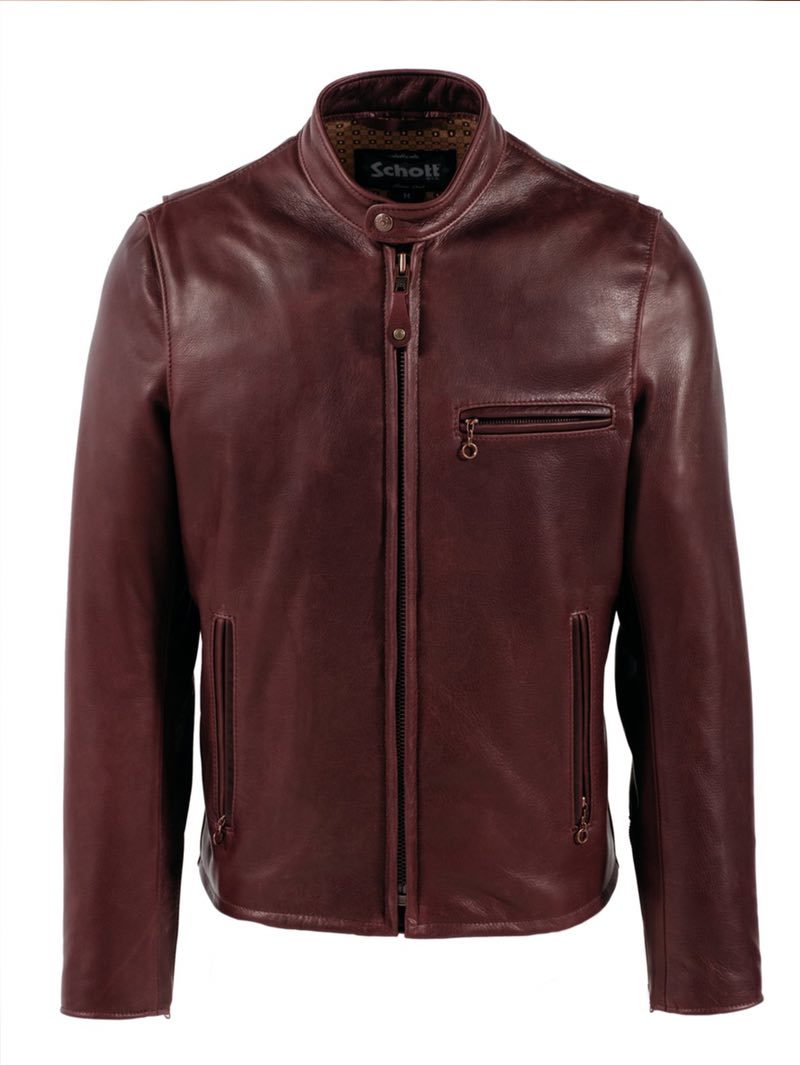 The 530 is a classic cool, no-frills leather jacket that looks perfect on the road or off the beaten path. Similar to the popular Model 141 but designed with a slimmer fit, this café racer motorcycle jacket is cut by hand from cowhide that was drum dyed, creating a natural, pebbled appearance. As with all leather jackets, Schott uses only the best, highest quality leather for the 530. Durable yet supple with a soft, luxurious feel, your new jacket will feel like a second skin right out of the box, no break-in period required.